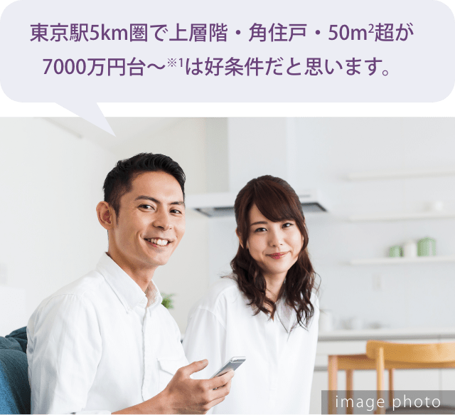 台東区が立地と価格のバランスが良いなと、目をつけたのが上野や浅草へ自転車でも行ける入谷エリア。中でもこちらの物件は上層階・角住戸・50㎡超の2LDKが7000万円台※1(※1000万単位)で、同じようなアクセスの物件と比べても好条件。将来的に運用・売却の想定もしている身からすれば、このアクセス、駅距離でこの価格であれば、月々の支払いも無理なくできそうですし、資産として大きな損をすることもないだろうと判断し、購入を決断しました。